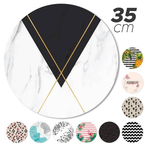 Conteúdo da Embalagem: 02 Capas de Sousplat para base redonda de 35cm x 35cm. 02 Bases de Sousplat MDF redonda 35cm x 35cm.