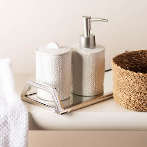 Com acabamento em cerâmica, este conjunto adiciona um visual clean e sofisticado que complementa qualquer estilo de banheiro.