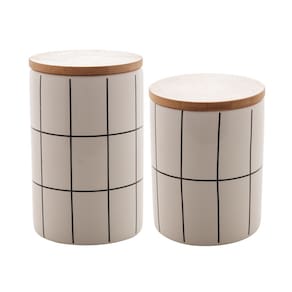 kit 2 peças Potiche de Cerâmica com Tampa de Bambu Branco. Apresentamos o kit de Potiche de Cerâmica, peças encantadoras que combinam a elegância da cerâmica, a sofisticação do branco e a naturalidade do bambu.