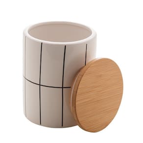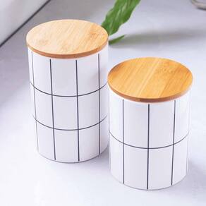 Tampa de Bambu com Detalhes em Branco; A tampa em bambu não apenas preserva a frescura dos alimentos, mas também possui detalhes em branco, adicionando um toque de sofisticação ao potiche, são ideais para armazenar pequenas porções de alimentos, especiarias ou pequenos objetos decorativos.