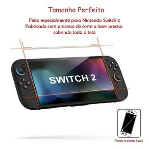 - 2 películas de vidro temperado premium - Dureza real 9H - Encaixe perfeito para Nintendo Switch 2 - Ultra transparente e sensível ao toque - Compatível com Dock - Espessura fina e resistente (0,33 mm) - Proteção contra arranhões, marcas e impactos - Instalação fácil com kit completo incluso - Dimensões: 19,5cm x 10,7cm (cobre toda a tela)