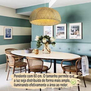 Kit 2 Pendente Bambu Fibra Natural Boho Grande 60 Cm Palha Nat54 Com um tamanho de 60 cm, um pendente de bambu grande oferece a vantagem de preencher visualmente o espaço de maneira impactante. Ele pode ser o ponto focal em um ambiente, criando uma atmosfera acolhedora e elegante. Além disso, o tamanho maior permite que a luz seja distribuída de forma mais ampla, iluminando efetivamente a área ao redor.