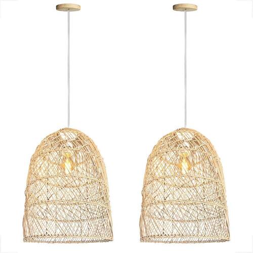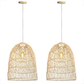 Kit 2 Pendente Fibra Natural Rattan Rustico Palha Bali Nat72