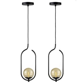 Kit 2 Pendentes Lustres On Clip Preto Globo De Vidro Ambar Lustre Pendente ON CLIP, design minimalista ao seu estilo. Descrição Técnica: - Modelo: On Clip - Acabamento: Pintura Térmica - Material: Alumínio e vidro - Tamanho (LxA): 16 cm x 41 cm - Cabo: 70 cm (regulável) - Soquete: Padrão G9 - Bivolt: Sim - Canopla: 12 cm **Lâmpadas vendidas separadamente**