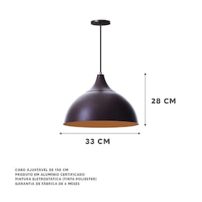 Características: - dimensões: 28x33cm - canopla redonda de 11cm de diâmetro - produto feito em alumínio - 150cm de fio ajustável - pronto para instalação - utilize a lâmpada que desejar - soquete e-27 - garantia de 6 meses contra defeitos de fabricação - produto bivolt - lâmpadas não inclusas neste produto.