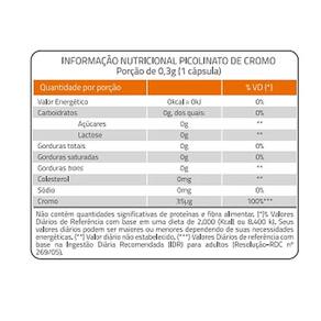Ingredientes: picolinato de cromo. Antiumectantes: celulose microcristalina ins 460i e dióxido de silício ins 551 e gelificante gelatina ins 428 . não contém glúten.