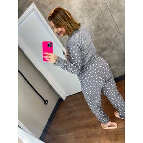 O conjunto com modelagem estampada dos nossos três pijamas é jovem e super atual. A calça é um detalhe que trás um charme especial combinado com a estampa ,calça em algodão estampada de coração, gatinho e poá transmitindo toda delicadeza da peça.