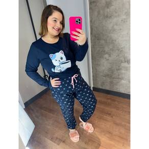 O conjunto com modelagem estampada dos nossos três pijamas é jovem e super atual. A calça é um detalhe que trás um charme especial combinado com a estampa ,calça em algodão estampada de coração, gatinho e poá transmitindo toda delicadeza da peça.