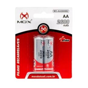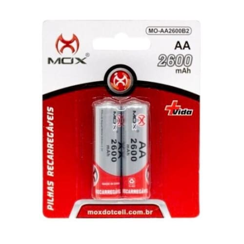 Kit com 2 Pilhas Recarregáveis Tamanho AA MOX 2.600mah Alta Capacidade Kit com 2 Pilhas MOX Recarregáveis de 2600mAh Que tal utilizar seu tradicional eletrônico e depois poder simplesmente recarregar as pilhas As pilhas recarregáveis são muito eficientes, uma solução econômica para o bolso e para a natureza já que a vida útil é bem maior do que as pilhas tradicionais. Especificações: - Pilhas Recarregáveis AA tamanho tradicional ; - Marca: MOX. - Capacidade da Pilhas: 2600mAh - Blister com 2 pilhas AA Recarregáveis. - Voltagem: 1.2V Itens Inclusos: 2 x Pilhas MOX AA Ean: 7898563932394