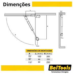 Pistão a gás para 6kg Beltools - Força Normal - Mini 185mm 60N