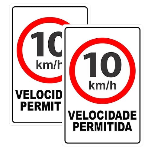 Especificação do produto: Material: pvc Medidas: 30cm x 20cm Fixação: adesivo, pregos ou parafusos Texto: aviso velocidade máxima permitida 10km/h Quantidade: 1 unidade