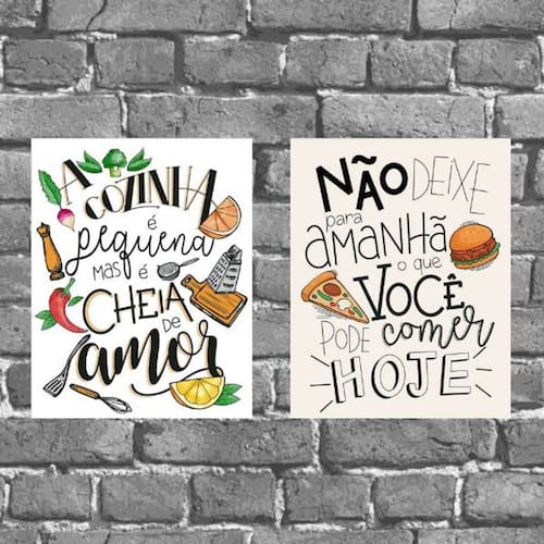 Kit 2 Placas Decorativas Frase Cozinha 18x27cm