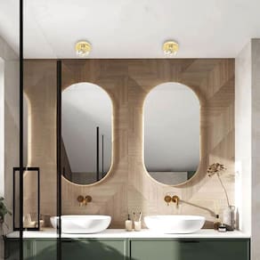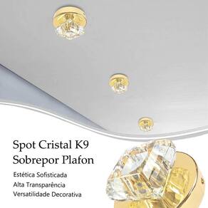 Kit 2 Plafon Spot Cristal Dourado Sobrepor Banheiro Bet46 + Led Plafon de sobrepor dourado de cristal k9