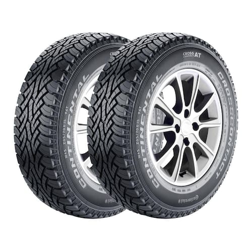 Mais informações sobre o produto O pneu ContiCrossContact AT foi desenvolvido especialmente para utilização nos mais variados tipos de terreno on-road e off-road. -Poder de tração e maior quilometragem: banda de rodagem com múltiplas lâminas e um composto resistente à cortes, proporcionando excelente poder de tração em terrenos irregulares, menor desgaste e alta durabilidade do pneu; -Proteção contra aquaplanagem: sulcos laterais largos e ombros abertos garantem uma grande capacidade de absorção e expulsão de água, protegendo contra a aquaplanagem. Sobre a empresa Quarta maior fabricante de pneus do mundo, essa fabricante alemã é muito respeitada pelo seu altíssimo nível de qualidade. A Continental é um dos principais fabricantes de pneus para veículos de passeio e comerciais leves da Europa e o quarto maior fornecedor do mundo de pneus para veículos de passeio e comerciais leves nos segmentos de equipamento original e reposição. A divisão de pneus da Continental possui atualmente 24 locais de produção e desenvolvimento em todo o mundo. A ampla gama de produtos e os contínuos investimentos em pesquisa e desenvolvimento trazem uma imensa contribuição à mobilidade com custo-benefício e eficiente ecologicamente.