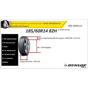 Kit 2 Pneus Dunlop 185/60r14 82h Splm704 O Kit com 2 Pneus Dunlop 185/60R14 82H SP LM704 oferece o equilibrio perfeito entre conforto, desempenho e seguranca. Desenvolvido com tecnologia japonesa de ponta, o modelo SP LM704 garante excelente aderencia tanto em pisos secos quanto molhados, proporcionando uma dirigibilidade estavel e silenciosa. Seu design moderno com sulcos otimizados reduz o risco de aquaplanagem e melhora a drenagem da agua, enquanto a estrutura reforcada assegura maior durabilidade e resistencia ao desgaste. Alem disso, a baixa resistencia ao rolamento contribui para a economia de combustivel, tornando-o uma escolha inteligente para o dia a dia.