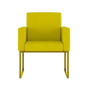 Kit 2 Poltrona Cadeira Decorativa Recepção Base Ferro Dourado Cor:amarelo