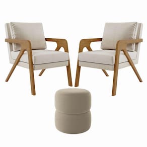 Kit Poltrona com Puff Escritório Luxo Rafa Madeira Maciça, Confortável e Sofisticada