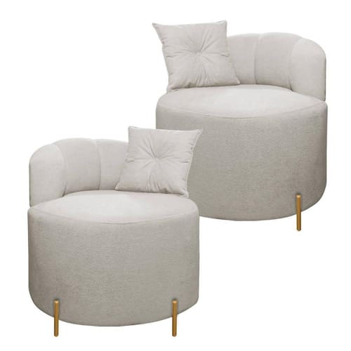 Transforme o seu espaço com nossas duas poltronas de formato orgânico! Feitas com espuma D26 de qualidade superior, estas poltronas oferecem um conforto excepcional para relaxar após um longo dia. Seu design único, com bordas arredondadas e pés de metal, adiciona um toque contemporâneo e elegante a qualquer ambiente. O revestimento em bouclê de alta qualidade não só proporciona uma aparência luxuosa, mas também uma sensação suave e aconchegante. Eleve o estilo e o conforto da sua casa com estas poltronas de alta qualidade.