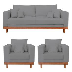 Você receberá 3 volumes, ou seja, um Kit 2 Poltrona + Sofá 2 Lugares Reforçado Base Madeira Linho