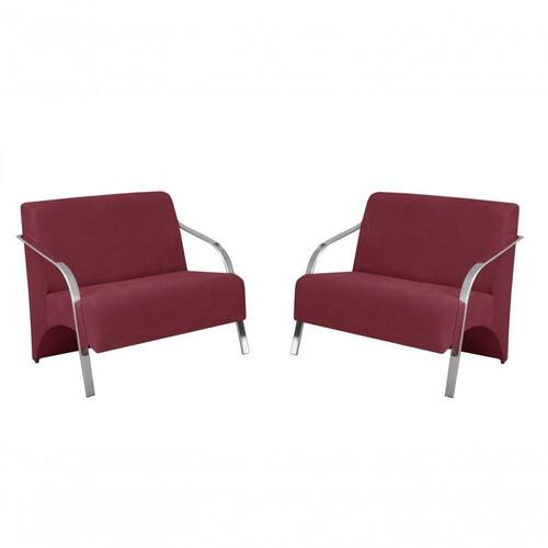 Kit 2 Poltronas 2 Lugares Vênus Braço Alumínio Suede - Blush