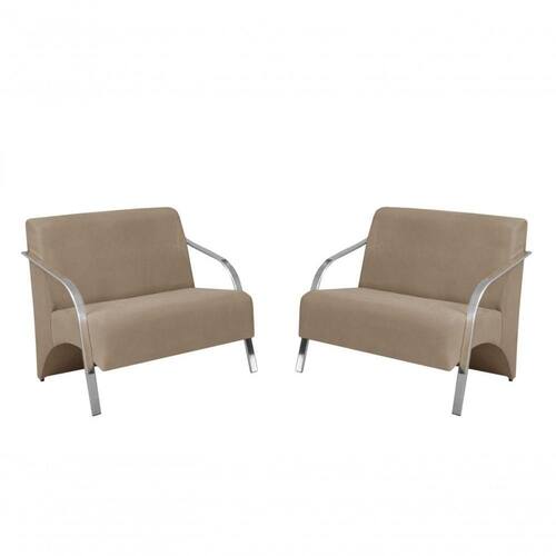 Kit 2 Poltronas 2 Lugares Vênus Braço Alumínio Suede - Blush
