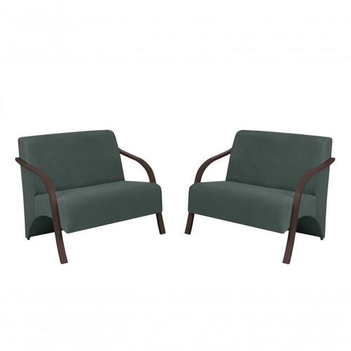 Kit 2 Poltronas Namoradeira 2 Lugares Vênus D Salla Suede Braço Madeira
