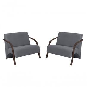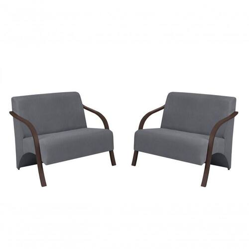 Kit 2 Poltronas Namoradeira 2 Lugares Vênus D Salla Suede Braço Madeira