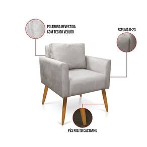 Que tal adicionar um pouco de elegância ao seu ambiente? Temos essa linda Poltrona Aline, ela é um item indispensável na elaboração de uma boa decoração. Perfeita para relaxar, não importa onde for colocada, fica linda no hall de entrada, em volta de uma mesinha de centro na sala de estar, como apoio no quarto ou acomodação extra em escritório. Sem dúvida, ela irá transformar seu espaço em um lugar super harmonioso e moderno. Sua estrutura é confeccionada em madeira de eucalipto proveniente de reflorestamento, o estofamento do assento/encosto é composto de espuma prorelax D-23, revestido em Veludo, um tecido aconchegante, resistente e extremamente luxuoso. Sua sustentação é dada pelos tradicionais pés palito castanho. E para complementar ainda mais esta peça, contém uma almofada do mesmo tom do tecido da poltrona, agregando um toque charmoso e lindo à mobília. Curtiu a nossa poltrona? Aqui você encontra uma variedade de cores, para renovar seu cômodo gastando pouco. Garanta já seu Kit 02 Poltronas Aline!