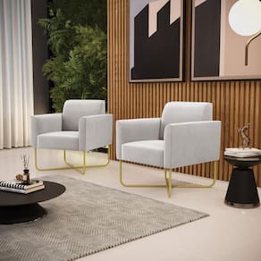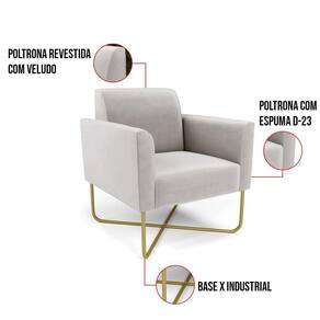 Todo mundo gosta de um ambiente bem decorado, e se for novidade melhor ainda não é mesmo? A DRossi, além de entregar beleza, qualidade e confiança aos clientes, ela dispõe das melhores opções em produtos, disponíveis no mercado! Se você quer um produto sofisticado, opte pela Poltrona Marisa. Ela dispõe de um tom lindo no Cinza, uma cor leve, neutra e delicada que combina com qualquer estilo de decoração. Esta mobília fica perfeita na sala, escritório, quarto, varanda coberta e onde mais preferir! Sua estrutura é feita em madeira reforçada de eucalipto proveniente de reflorestamento. No assento/encosto contém um revestimento no tecido Veludo, com estofamento em espuma prorelax D-23, garantindo maior conforto ao usuário. A sustentação da peça é dada pela Base X Industrial Dourado, garantindo uma resistência melhor, para relaxar o dia todo com mais comodidade. A Poltrona Marisa é ideal, para dar aquele realce que seu ambiente precisa. Tenho certeza que, esse móvel é a melhor compra que você irá fazer. Garanta já seu kit 02 Poltronas e se acomode da melhor maneira possível!