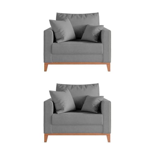 IMAGENS MERAMENTE ILUSTRATIVAS REALIZADO EDIÇÃO, PODENDO HAVER UMA PEQUENA VARIAÇÃO DE COR DEPENDENDO DE CADA TELA OU MONITOR.Kit 2 Poltronas Beny AmamentaÃÃo com 2 Almofadas Base em Madeira MaciÃa Tecido Linho Cinza