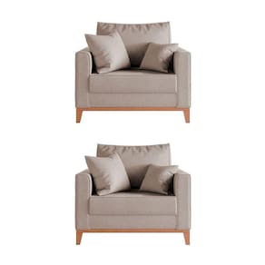 IMAGENS MERAMENTE ILUSTRATIVAS REALIZADO EDIÇÃO, PODENDO HAVER UMA PEQUENA VARIAÇÃO DE COR DEPENDENDO DE CADA TELA OU MONITOR.Kit 2 Poltronas Beny Decorativa com 2 Almofadas Linho Bege Base em Madeira MaciÃa