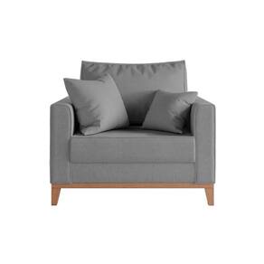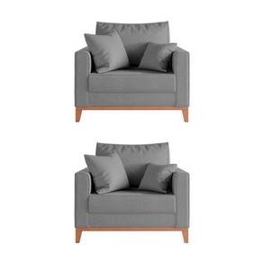 Kit 2 Poltronas Beny para Recepção com 2 Almofadas Linho Cinza Base em Madeira Maciça