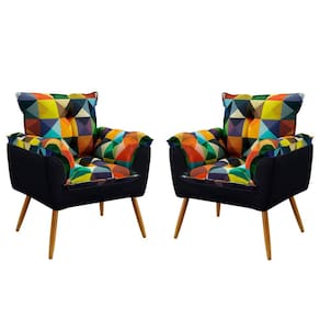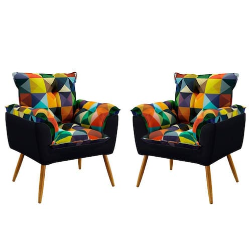 Kit 2 Poltronas Beta F-015 Sued Estampado Colorido com Veludo Aradecor - Preto