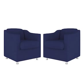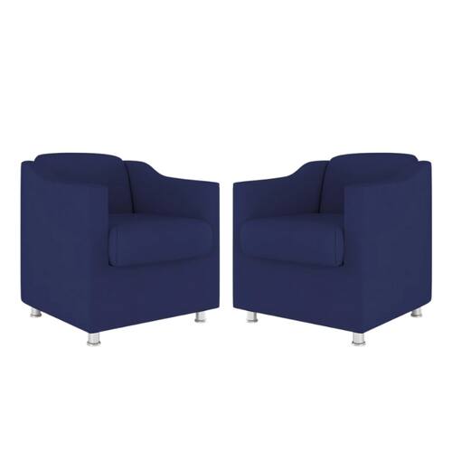 Kit 2 Poltronas Bia Decorativa Reforçada Recepção Clinica Salão Sala De Estar Suede - Azul Marinho