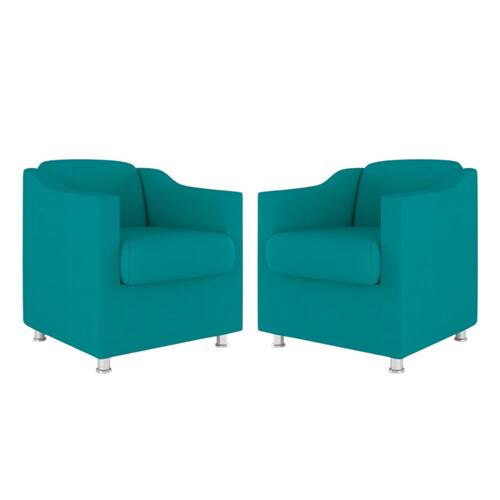 Kit 2 Poltronas Bia Decorativa Reforçada Recepção Clinica Salão Sala De Estar Suede - Azul
