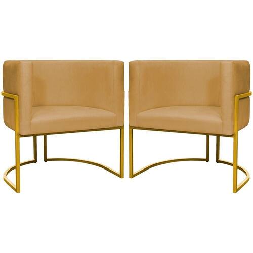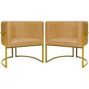 Kit 2 Poltronas Cadeira Para Sala De Luna Suede Cores Base Dourada - Mostarda, Suede
