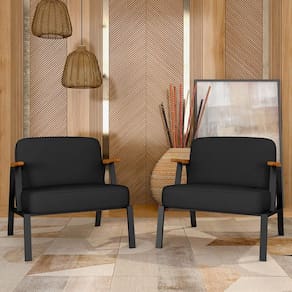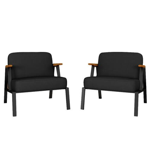 Detalhes Técnicos das Poltronas - Assento e Encosto Tapeçados, Estofados e Fixos - Espuma do Assento e do Encosto: D20 - Tonalidade: Preto Fosco (estrutura)/Cinamomo (braço)/Suede Preto (estofado) - Material: Estrutura em Metalon | Braço em Madeira - Medida Poltrona: A: 72CM x L: 78CM x P: 73CM - Medida do chão até o assento: 42cm de altura - Poltrona suporta até 120KG - Montagem: Difícil