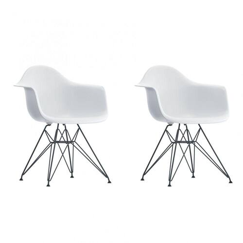 Kit com 2 cadeiras DKR com braço. Essa cadeira suporta até 120 kg de peso máximo, que dá mais tranquilidade ao sentar e tem 4 pés fixos que não arranham o piso do cômodo. Ela tem design versátil, assento confortável e vem com kit de montagem, para tudo ficar mais rápido e prático. O acabamento cromado deixa o móvel mais bonito e dá mais destaque a decoração de toda a casa. A cadeira tem estrutura em metal de altíssima qualidade, que proporciona muito mais resistência, mesmo com o passar dos anos.