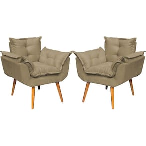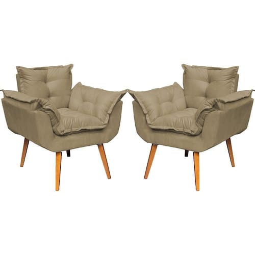 KIT 2 POLTRONAS ALICE SUEDE CORES PÉ TRAPÉZIO 30CM CASTANHO