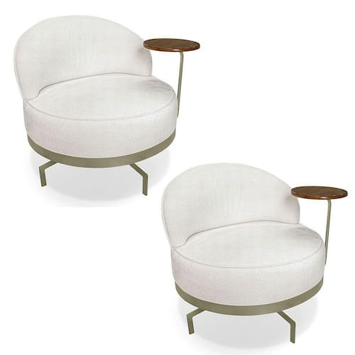 Kit 2 Poltronas Decorativa Andromeda Linho Bouclê Bege Pérola Base Giratória De Ferro - Pallazio