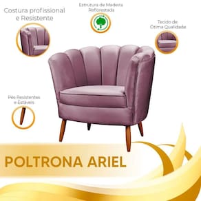 Caracteristicas: Poltronas Marca: Star Confort Modelo: Ariel Petala Peso Suportado: 120 kg Tipo de Tecido: Veludo Estrutura: Madeira Eucalipto Reflorestada, e alguns detalhes em MDF Assento e Encosto: Espuma D20 Detalhes dos Pes: acompanha kit de pes (4 pes para cada Poltrona) de madeira, no estilo palito, levemente inclinado com alta resistencia