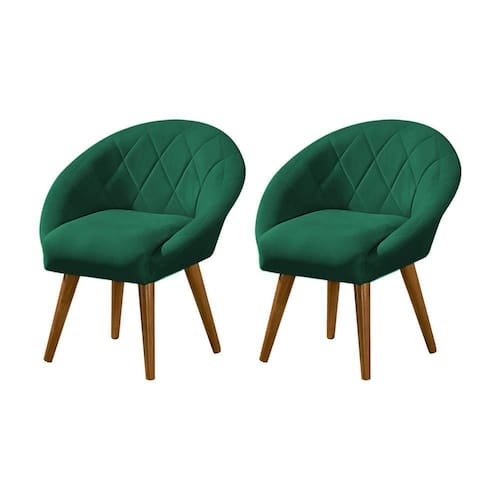 AS IMAGENS SÃO MERAMENTE ILUSTRATIVAS E PODEM SOFRER VARIAÇÕES DE COR E PEQUENOS DETALHES DE ACORDO COM O SEU MONITOR, ILUMINAÇÃO DO AMBIENTE E ATÉ MESMO A SUA PERCEPÇÃO 2 Poltronas Decorativa Canastra Estofada Veludo Verde Esmeralda PÃs Palito em Madeira MaciÃa