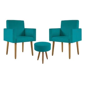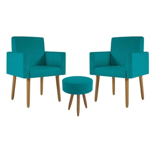 Kit 2 Poltronas Decorativa Consultorio Nina Com Puff Balaqui Cor:azul Turquesa Azul Turquesa