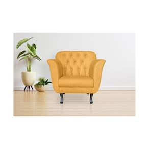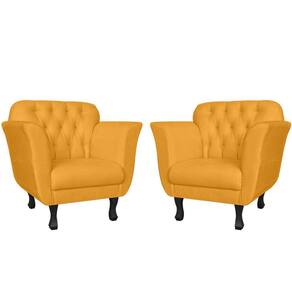 Kit 2 Poltronas Decorativa Dália Couro Amarelo Pés Madeira Mz Decor