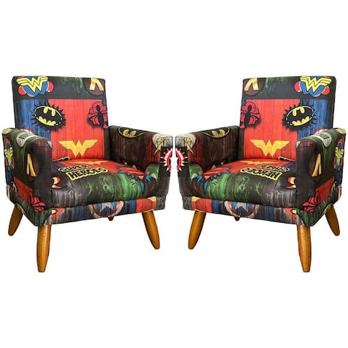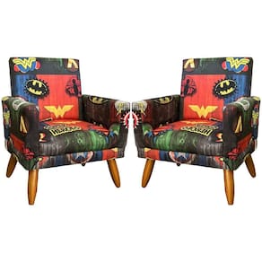 Kit 2 Poltronas Decorativa Infantil Confortável Para Quarto Suede Com Estampa Pés Castanhos
