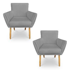 Kit 2 Poltronas Decorativa Leticia Suede Pés Palito Castanho - Pallazio - Grafite