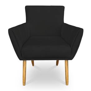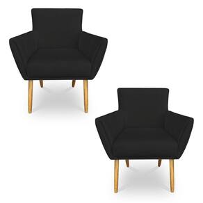 Kit 2 Poltronas Decorativa Leticia Suede Preto Pés Palito Castanho - Pallazio