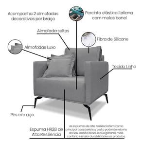 Linho, Madeira Eucalipto, Aço Carbono, Espuma HR28, Fibra de SiliconeVendido e entregue por WebContinental
