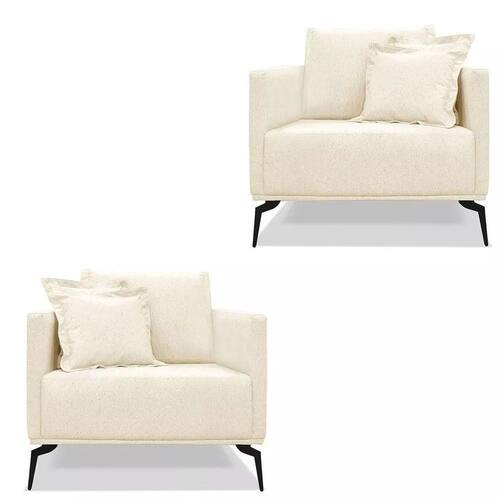 Kit 2 Poltronas Decorativa Livorno Linho Com Pés Em Aço - Ssx Multicoisas Cor Perola Para você que deseja deixar a sua sala ou escritório muito mais sofisticado, apresentamos esse lindo modelo de poltrona. A poltrona Livorno tem um design moderno e vai trazer todo o conforto que você precisa. Seu assento tem percintas elásticas italianas que são da melhor qualidade e vai aumentar a vida útil da poltrona, também tem a espuma de alta resiliência HR28 que são conhecidas pela elasticidade somada ao conforto se comparada às espumas tradicionais, e além da espuma HR28 o assento também tem plumante em silicone que vai trazer ainda mais conforto. Os braços são em madeira maciça com sapatinha e a almofada do encosto é de fibra de silicone. Confira as características e dimensões.Informações Técnicas:Tecido: LinhoEstrutura: Madeira EucaliptoMaterial Pés: Aço CarbonoDensidade da Espuma: HR28Assento: Fixo com percintas elásticas italiana, espuma HR28 e plumante em siliconeEncosto: Almofada solta em fibra de siliconePeso Suportado: Até 180 kgMontagem: O produto vai montado.Medidas:Altura total: 92 cmLargura total: 80 cmProfundidade total: 92 cmAltura do chão ao assento: 46 cmAltura do encosto: 46 cmProfundidade do assento: 54 cmAltura dos pés: 18 cmAltura do chão ao braço: 71 cmLargura do braço: 8 cmPeso: 18 kg