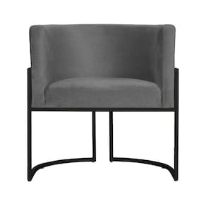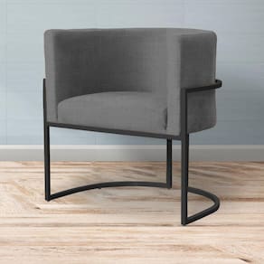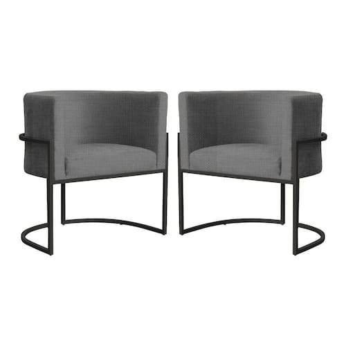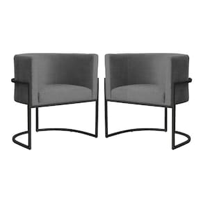 Kit 2 Poltronas Decorativa Luana Linho Cinza Base Preta Mz Decor
